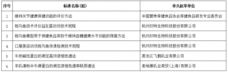 中國營養保健食品協會(以下簡稱“協會”)審議通過了6項團體標準立項提案,現予立項,名單見附件。