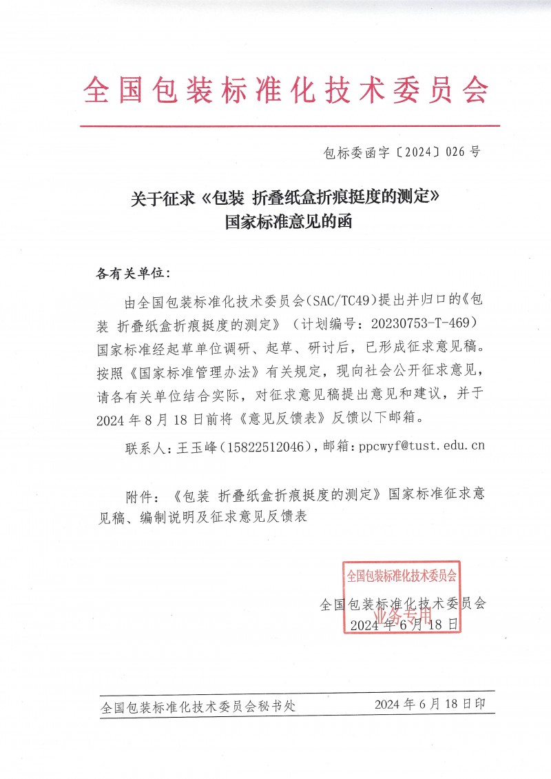 《包裝折疊紙盒折痕挺度的測定》國家標準(征求意見稿)編制說明