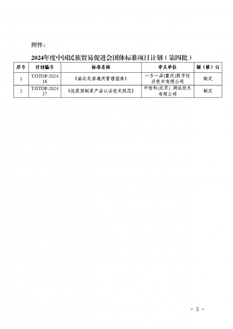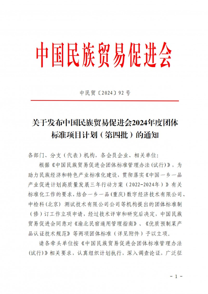 關于發布中國民族貿易促進會2024年度團體標準項目計劃(第四批)的通知(中民貿[2024]92號)