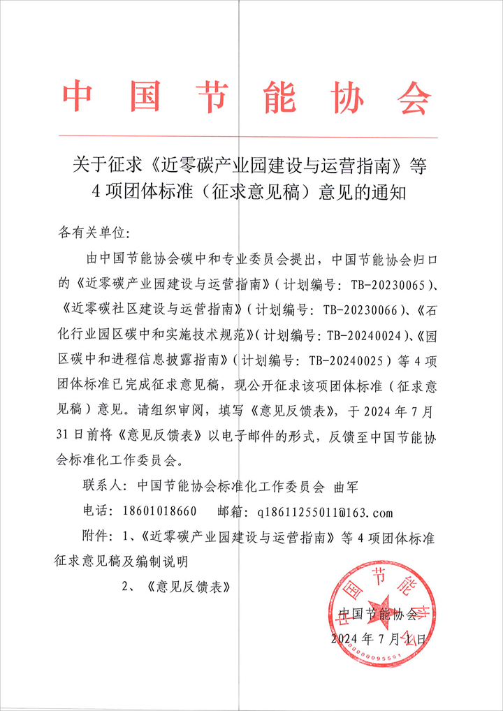 關(guān)于征求《近零碳產(chǎn)業(yè)園建設(shè)與運(yùn)營指南》等4項(xiàng)團(tuán)體標(biāo)準(zhǔn)(征求意見稿)意見的通知.rar