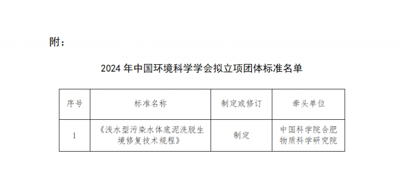 根據《中國環境科學學會標準管理辦法(試行)》的有關規定,經自愿申報、形式審查、專家論證等程序,團體標準《淺水型污染水體底泥洗脫生境修復技術規程》項目通過了論證,擬正式立項。現將擬立項團體標準名稱、牽頭單位予以公示。公示期為2024年6月28日至7月12日。
