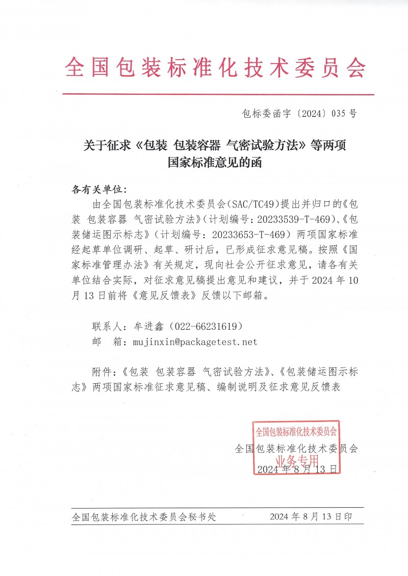 《包裝 包裝容器 氣密試驗方法》國家標準(征求意見稿)