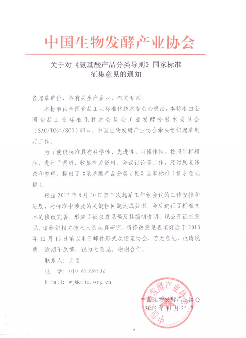 為了使該標準具有科學性、先進性、可操作性,按照制標程序,進行了調研、收集有關資料、會議討論等工作,經過反復修改和整理,提出了《氨基酸產品分類導則》國家標準(征求意見稿)。