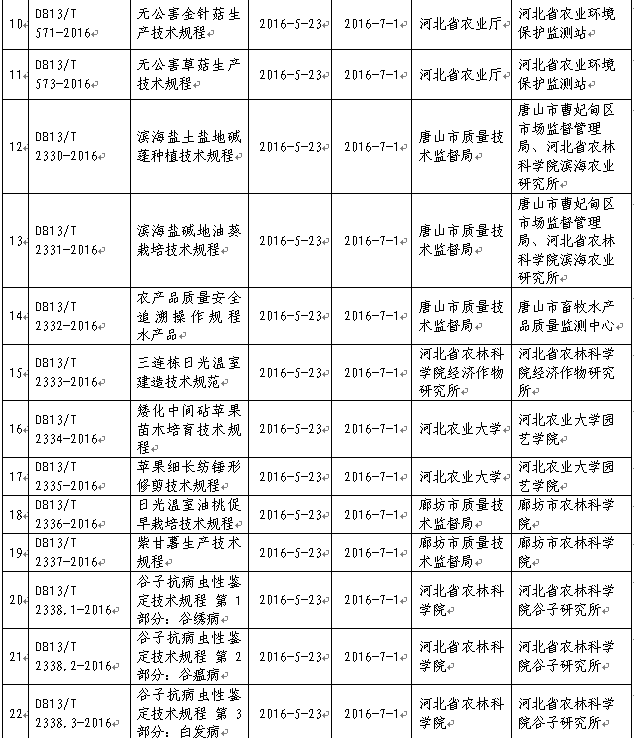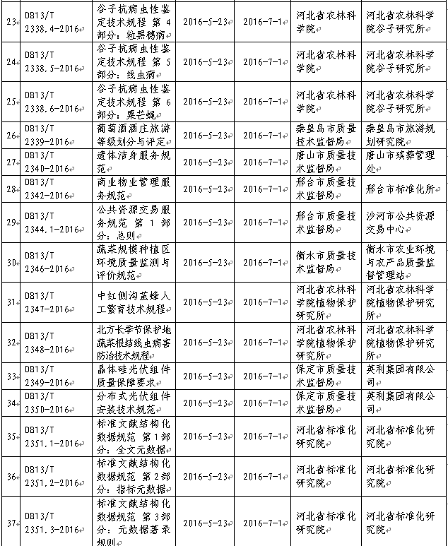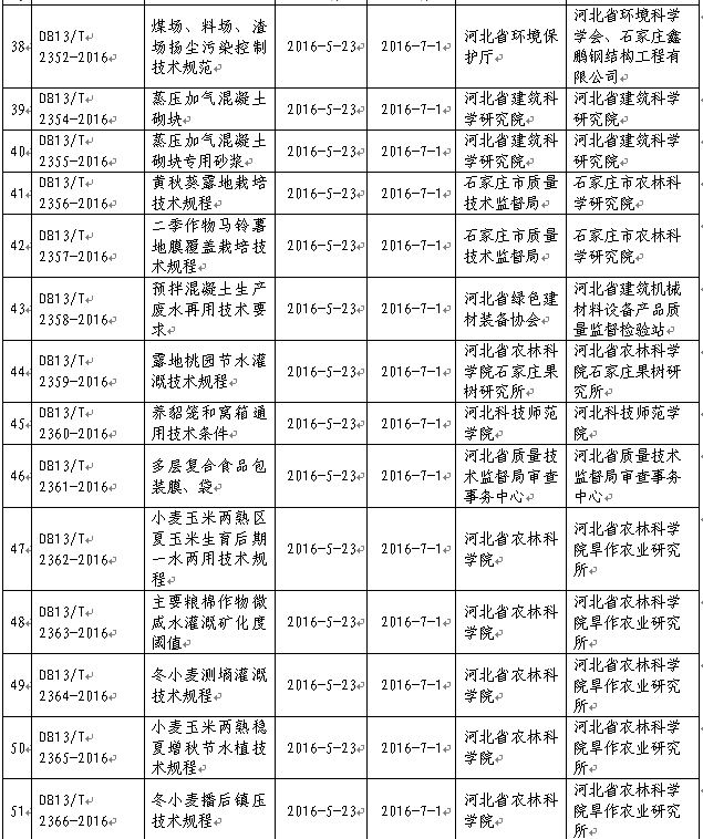 審批發(fā)布2016年河北省地方標(biāo)準(zhǔn)目錄