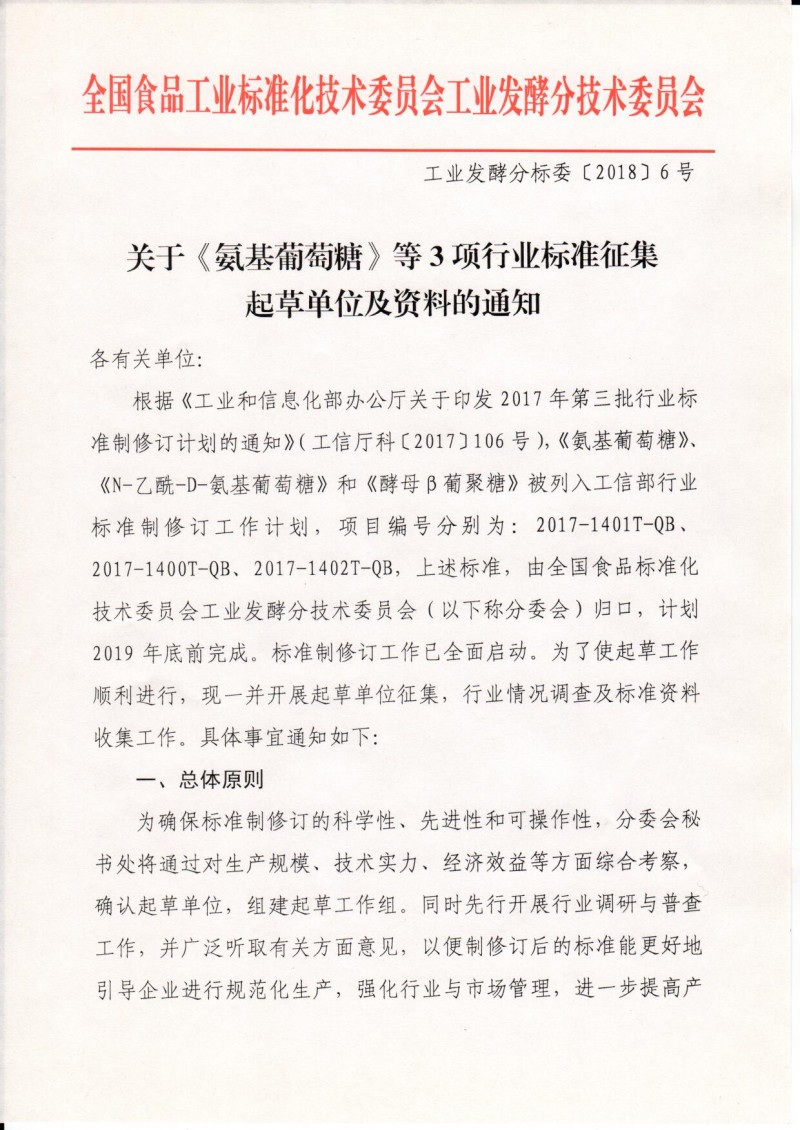 關于《氨基葡萄糖》等3項行業標準征集起草單位及資料的通知