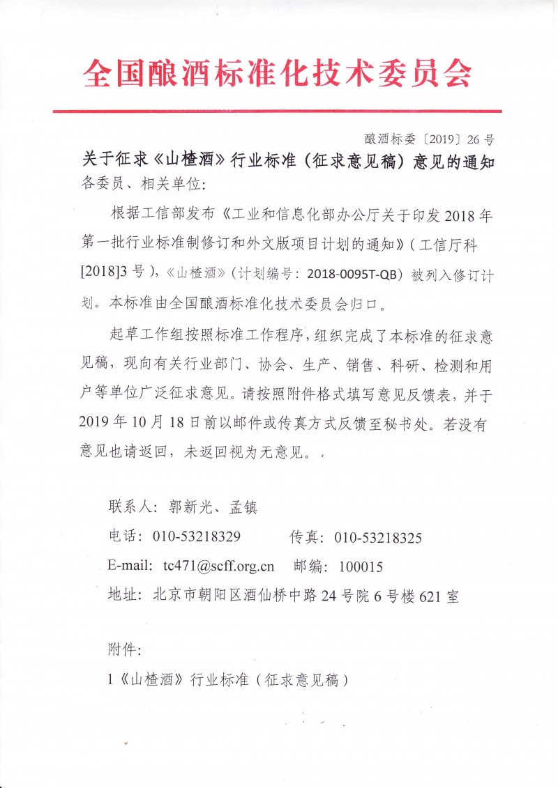1《山楂酒》行業(yè)標(biāo)準(zhǔn) 征求意見稿
