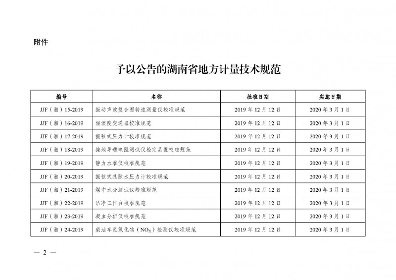JJF(湘)22-2019 | 潔凈工作臺校準規范 | 2019-12-12 | 2020-03-01 |