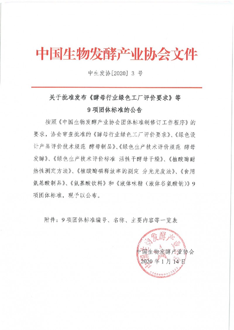 2 | T/CBFIA 01002-2020 | 綠色設(shè)計(jì)產(chǎn)品評(píng)價(jià)技術(shù)規(guī)范 酵母制品 | 2020-02-01 |