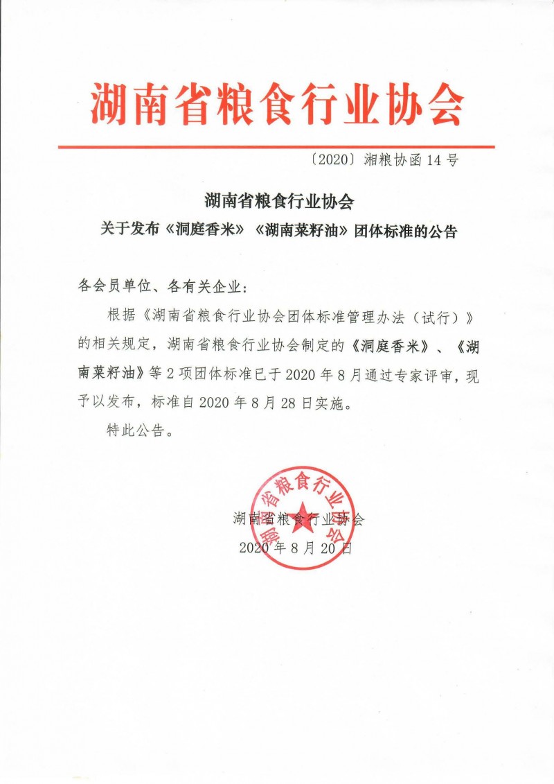 1 | T/HNAGS 14-2020 | 湖南菜籽油 | 2020-08-18 | 2020-08-28 |