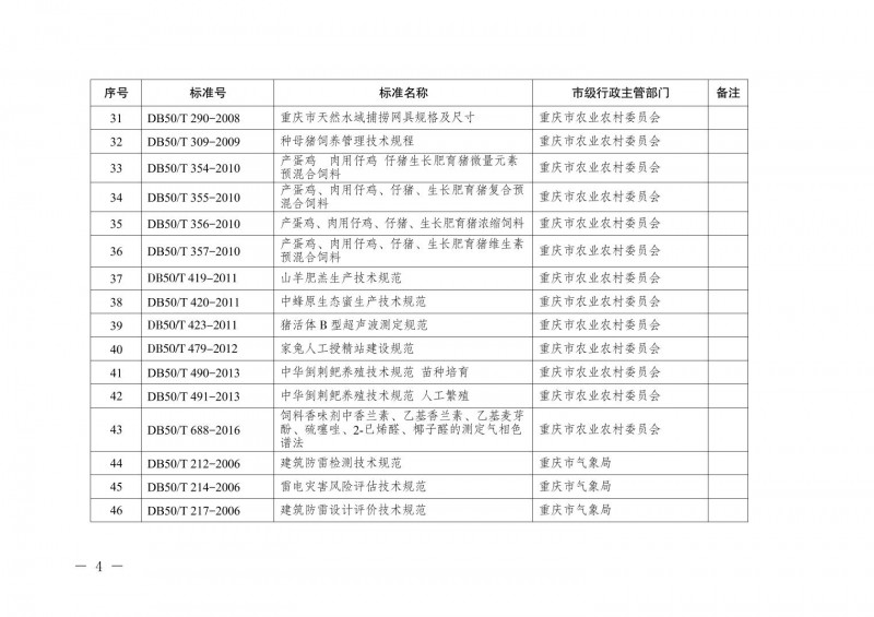 21 | DB50/T 419-2011 | 山羊肥羔生產(chǎn)技木規(guī)范 |