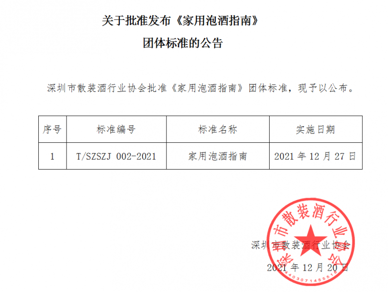 深圳市散裝酒行業(yè)協(xié)會關(guān)于批準(zhǔn)發(fā)布《家用泡酒指南》團(tuán)體標(biāo)準(zhǔn)的公告.pdf