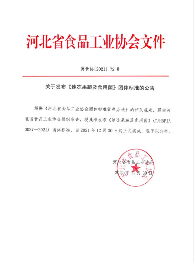 T/HBFIA 0027-2021 速凍果蔬及食用菌