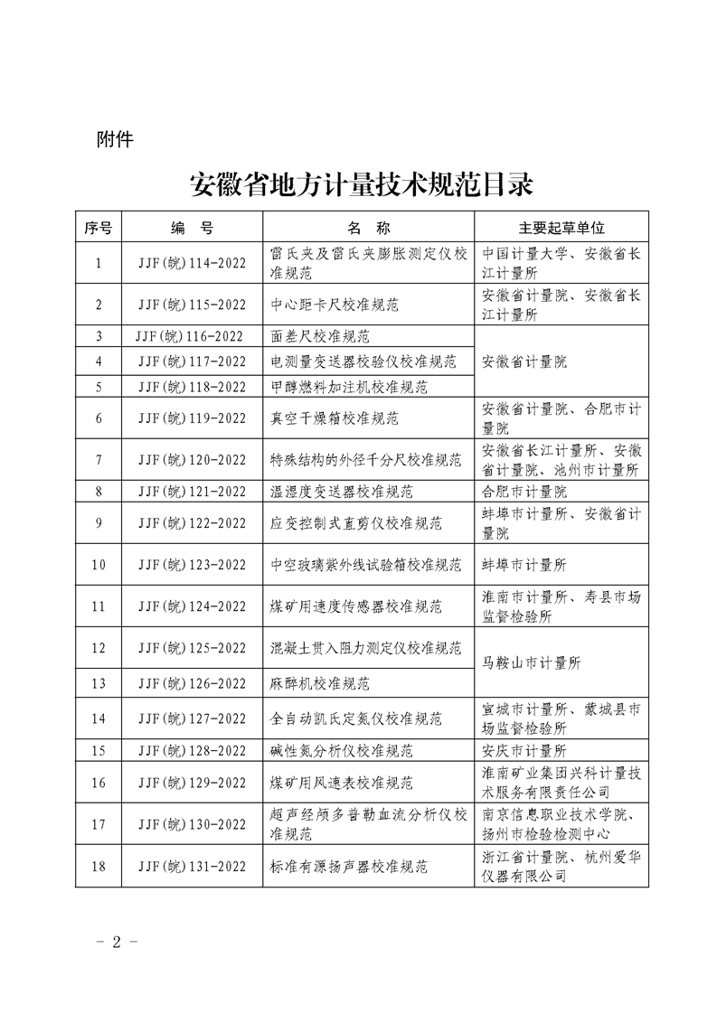 安徽省市場監督管理局關于批準《全自動凱氏定氮儀校準規范》等18項安徽省地方計量技術規范發布實施的通告(2022年第2號)