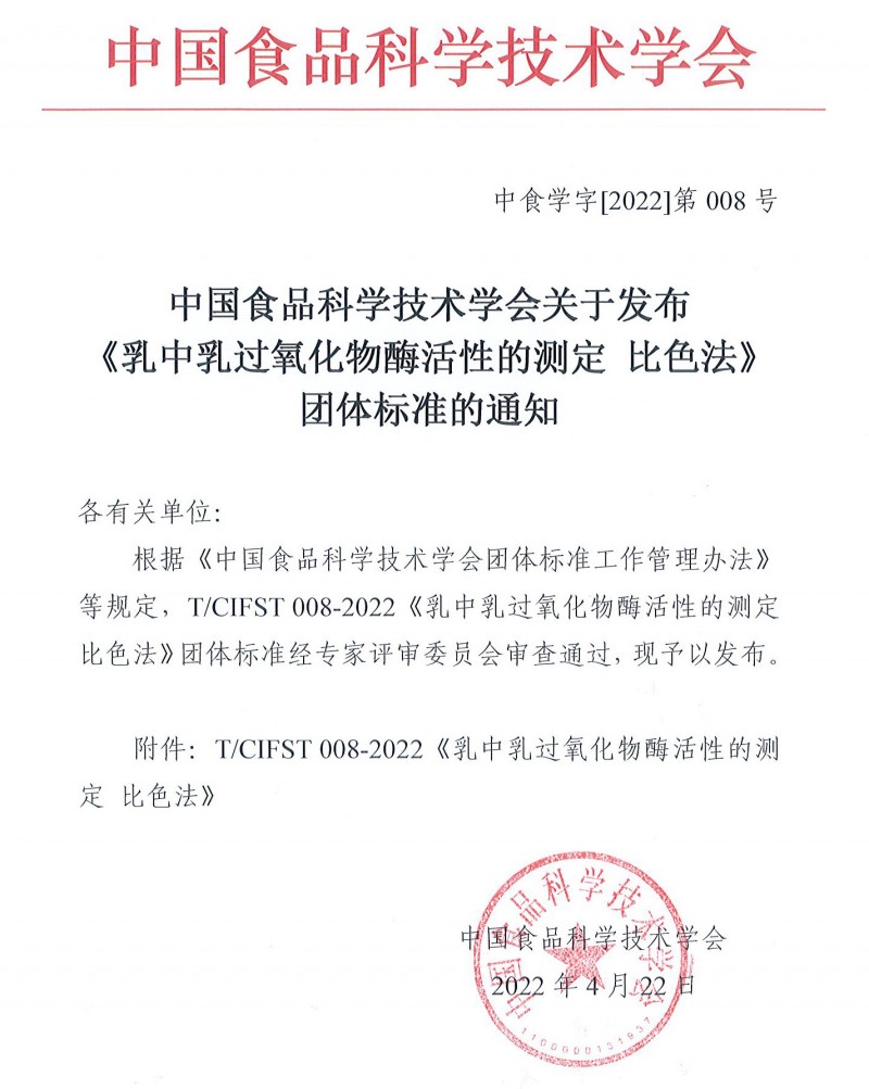 附件:T/CIFST 008-2022《乳中乳過氧化物酶活性的測定 比色法》 .pdf