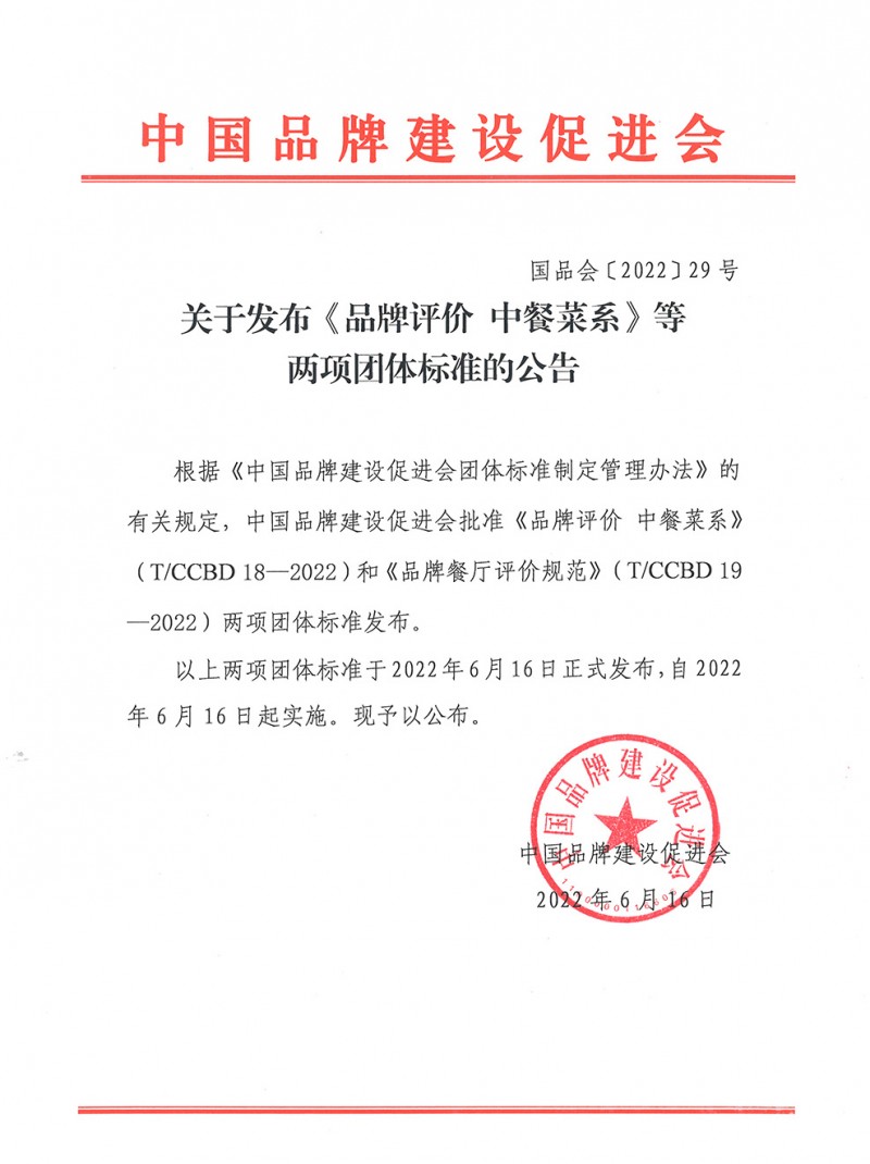 T/CCBD 18-2022 品牌評價 中餐菜系