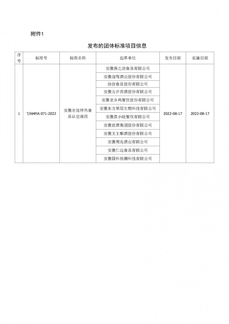 下載中心首頁 » 動態公告 » 標準公告 » 安徽省食品行業協會關于發布《安徽名優特色食品認定規范》 團體標準的通知(皖食協[2022]26號)