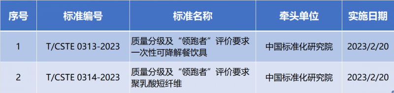 根據《中國技術經濟學會團體標準管理辦法》的有關規定,中國技術經濟學會批準《質量分級及“領跑者”評價要求 一次性可降解餐飲具》等兩項團體標準,F予以發布,詳細信息見下表: