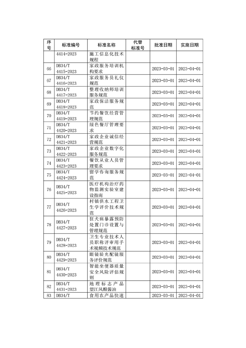 DB34/T 4420-2023 | 綠色餐廳管理要求 | 2023-03-01 | 2023-04-01 | |