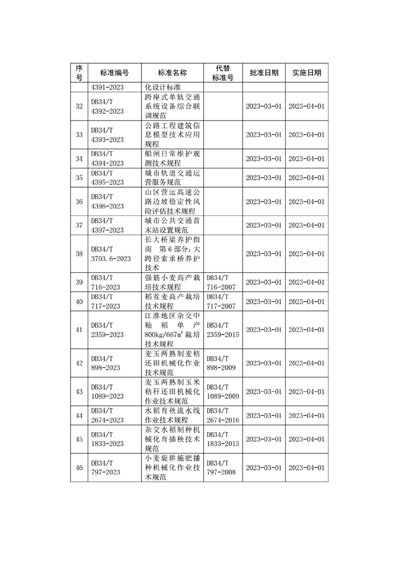 DB34/T 1089-2023 | 麥玉兩熟制玉米秸秤還田機(jī)械化作業(yè)技術(shù)規(guī)范 | DB34/T 1089-2009 | 2023-03-01 | 2023-04-01 |