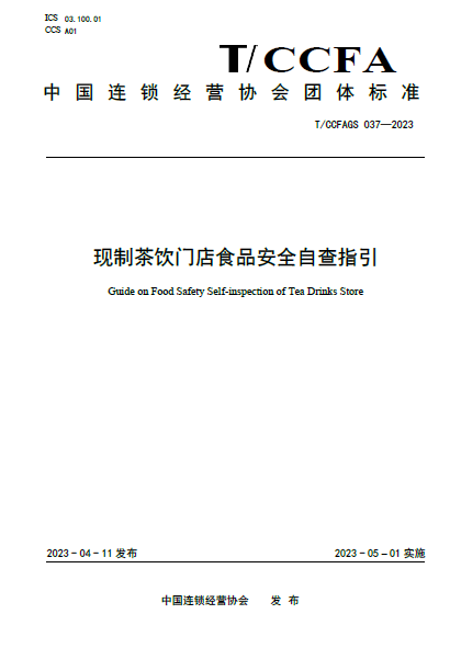 2023年4月11日,中國連鎖經營協會CCFA聯合多家茶飲品牌和第三方質量機構,在上海召開的中國連鎖餐飲峰會上,共同發布團體標準《現制茶飲門店食品安全自查指引》。該團體標準將于2023年4月30日起實施。