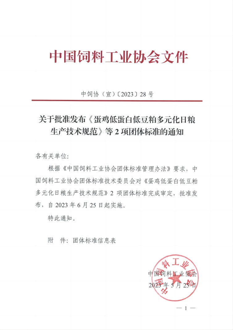 關于批準發布《蛋雞低蛋白低豆粕多元化日糧生產技術規范》等兩項技術標準的通知.pdf