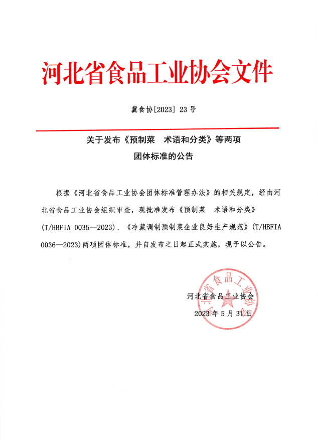 T/HBFIA 0036-2023冷藏調(diào)制預(yù)制菜企業(yè)良好生產(chǎn)規(guī)范