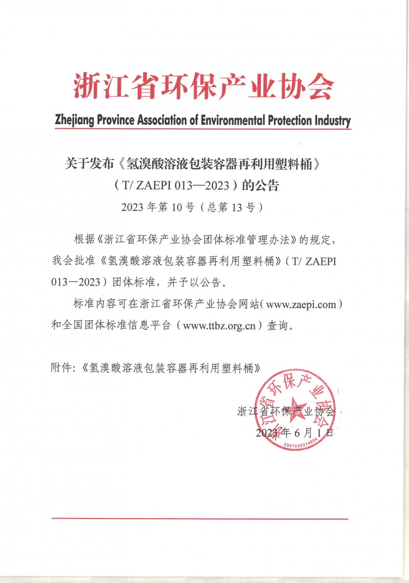 T/ZAEPI 013-2023 氫溴酸溶液包裝容器再利用塑料桶