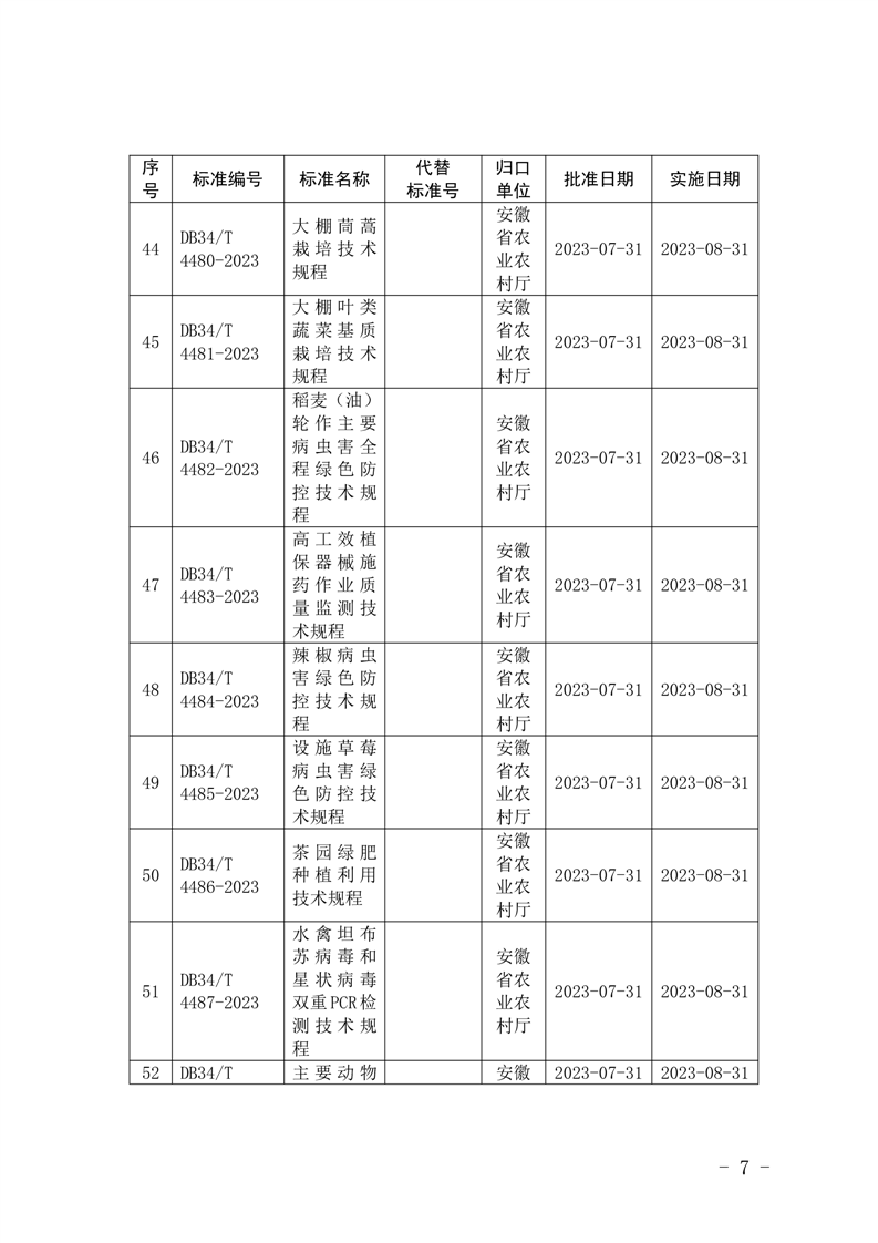 DB34/T 4481-2023 | 大棚葉類蔬菜基質栽培技術規程 | 2023-07-31 | 2023-08-31 | |