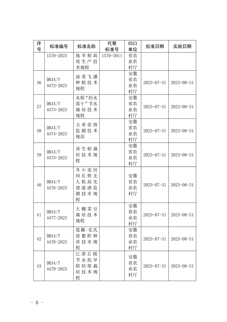 DB34/T 4473-2023 | 水稻“控水落干”節水栽培技術規程 | 2023-07-31 | 2023-08-31 | |