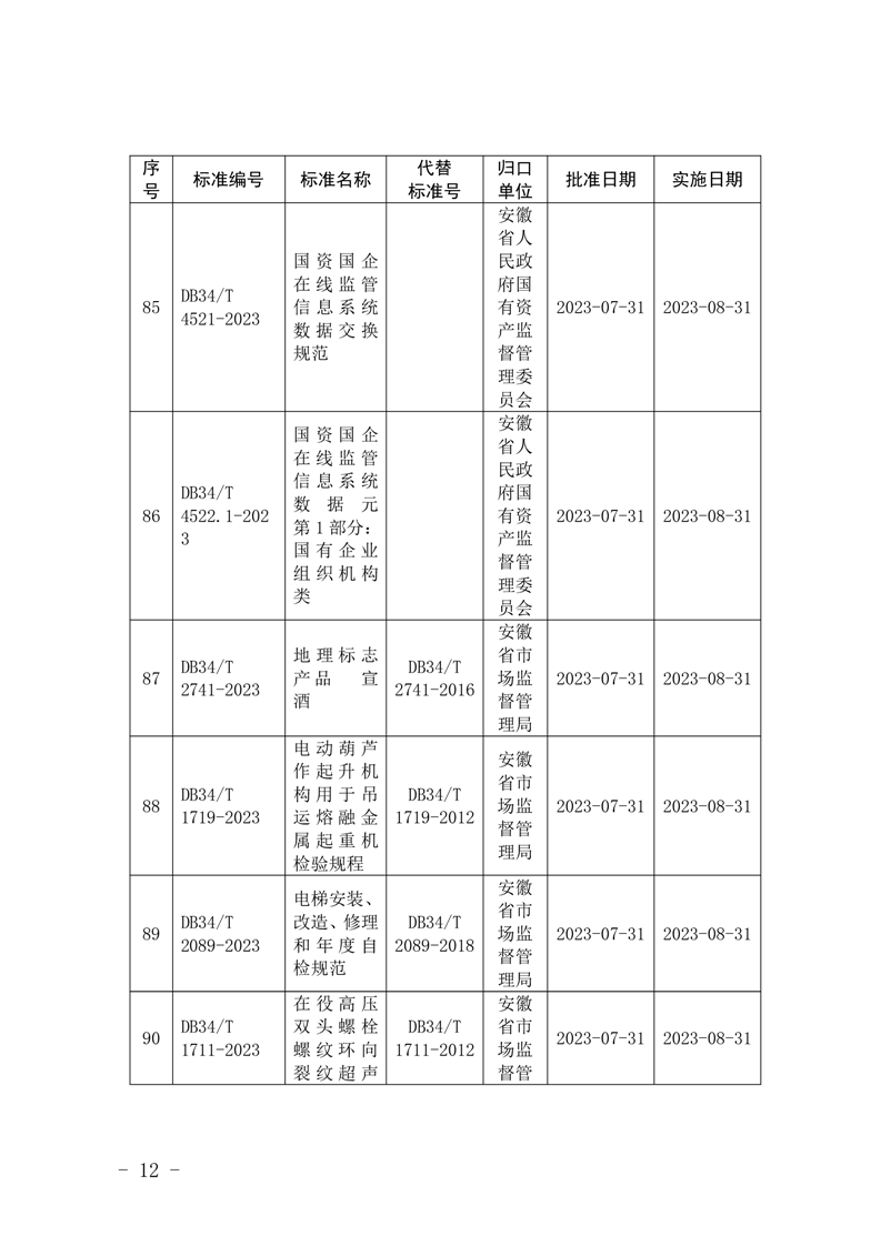 DB34/T 4531-2023 | 安徽省氣瓶質量安全追溯信息平臺數據接口規范 | 2023-07-31 | 2023-08-31 | |