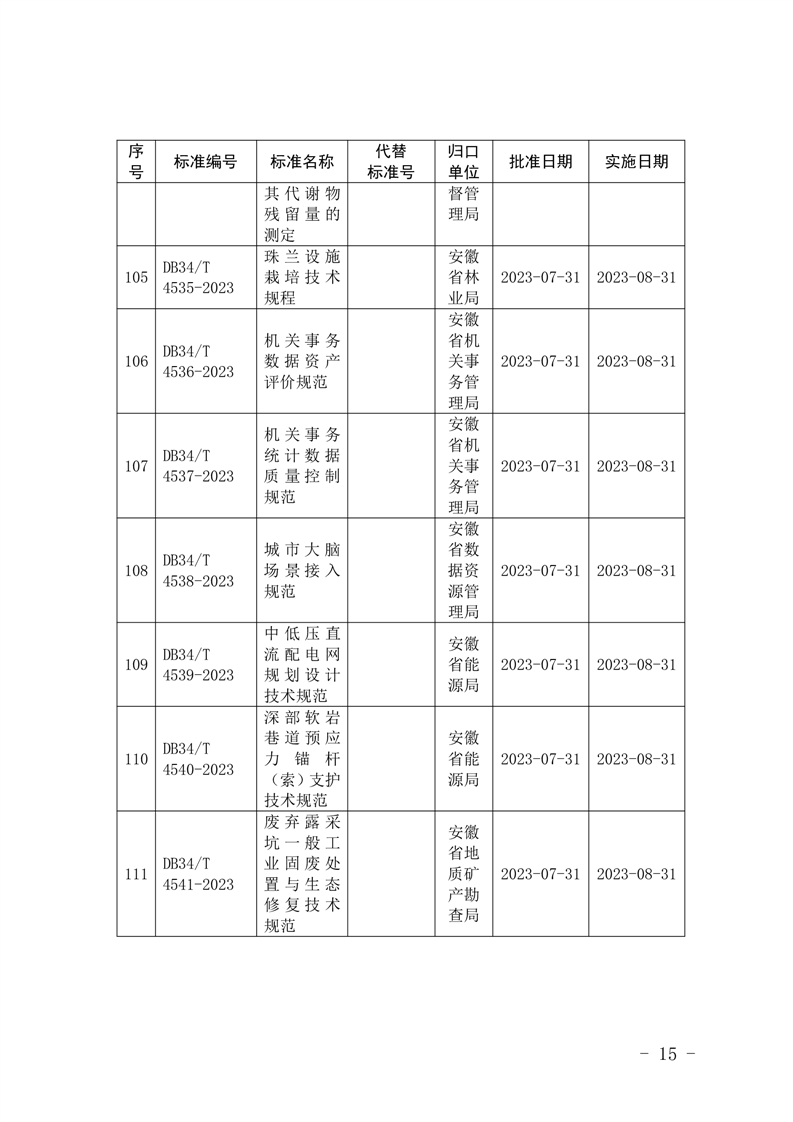 DB34/T 4496-2023 | 冷鏈食品冷庫 信息規范 | 2023-07-31 | 2023-08-31 | |