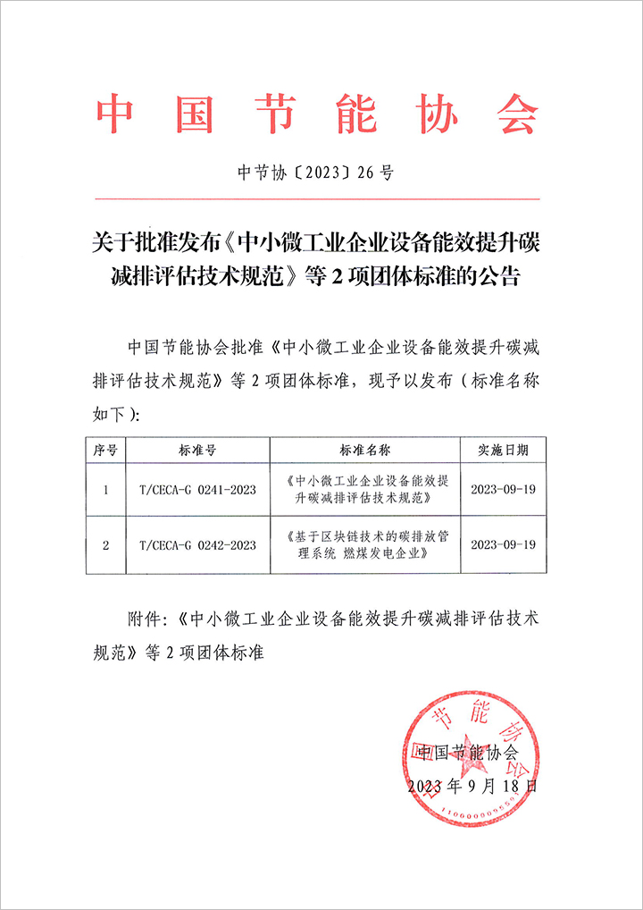 關于批準發布《中小微工業企業設備能效提升碳減排評估技術規范》等2項團體標準的公告.PDF