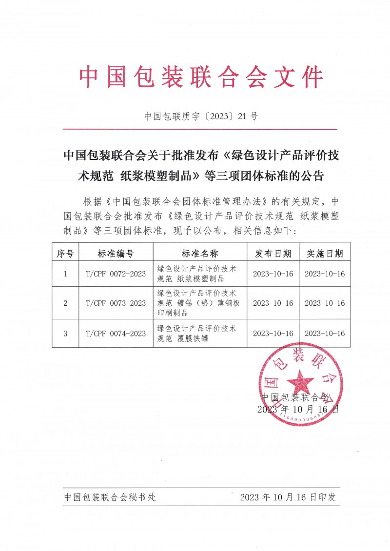 T/CPF 0072-2023 綠色設(shè)計(jì)產(chǎn)品評(píng)價(jià)技術(shù)規(guī)范 紙漿模塑制品