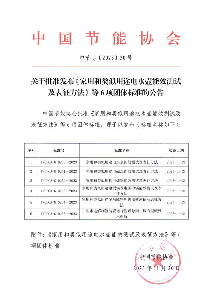 關于批準發布《家用和類似用途電水壺能效測試及表征方法》等6項團體標準的公告.PDF
