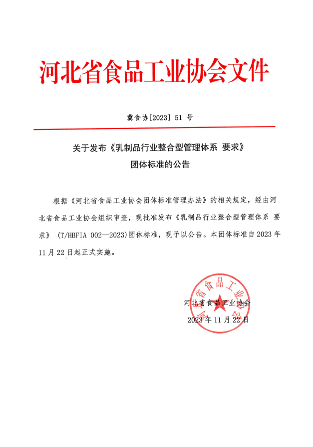 T/HBFIA 002-2023 乳制品行業(yè)整合型管理體系 要求