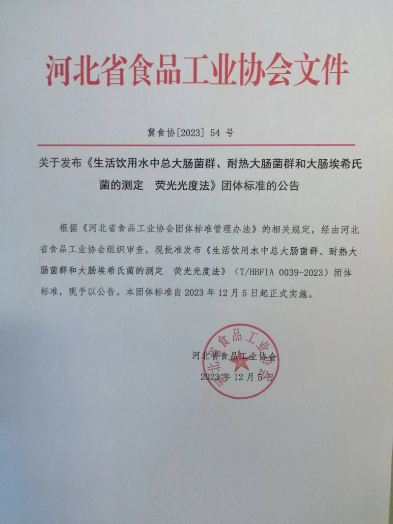 T/HBFIA 0039-2023 生活飲用水中總大腸菌群、耐熱大腸菌群和大腸埃希氏菌的測定 熒光光度法