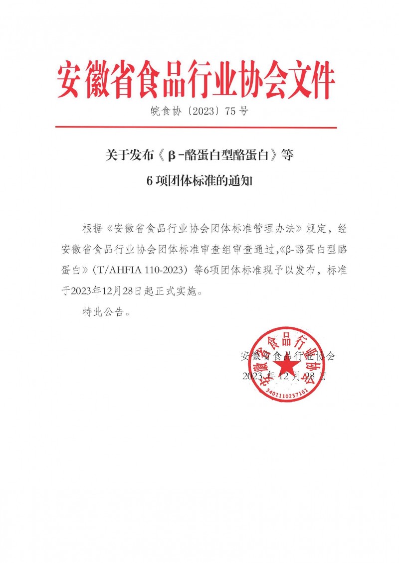 T/AHFIA 110-2023 β-酪蛋白型酪蛋白