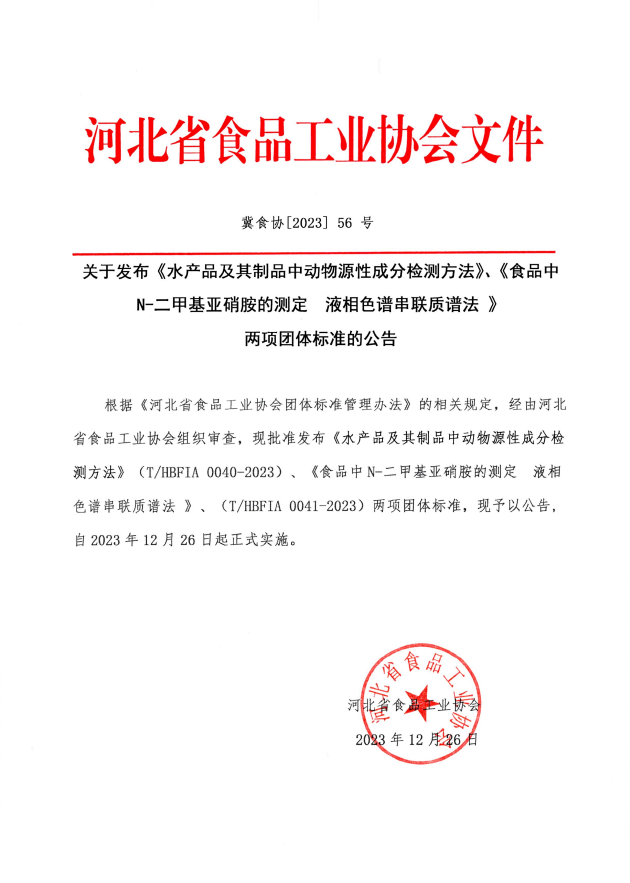 T/HBFIA 0041-2023 食品中N-二甲基亞硝胺的測定 液相色譜串聯質譜法