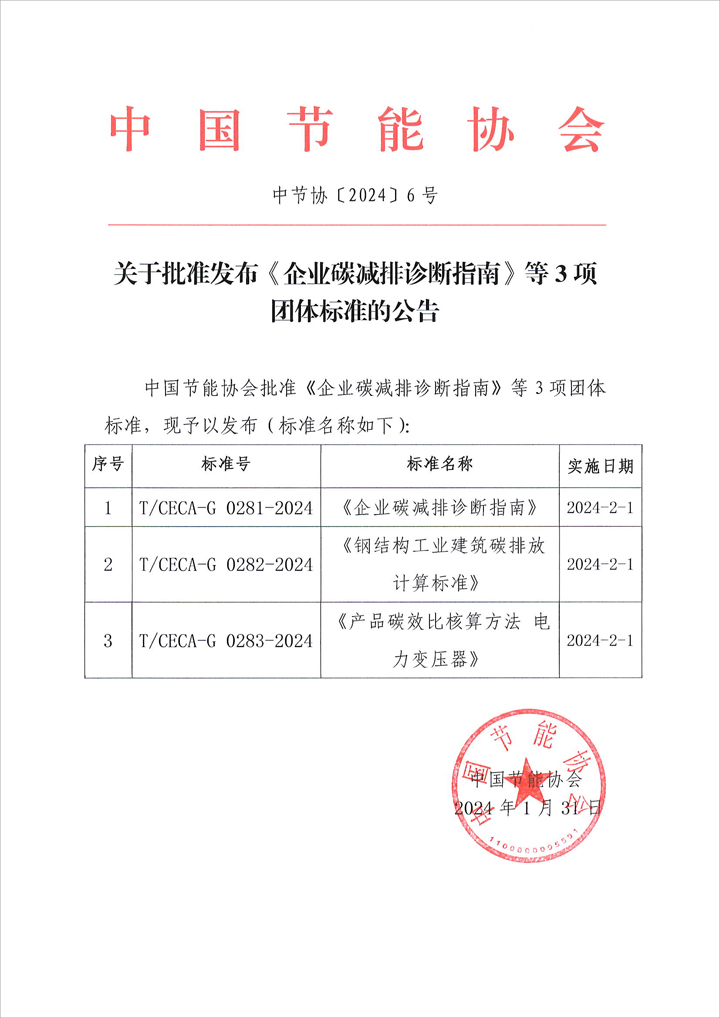 相關標準如下:T/CECA-G 0281-2024 企業碳減排診斷指南