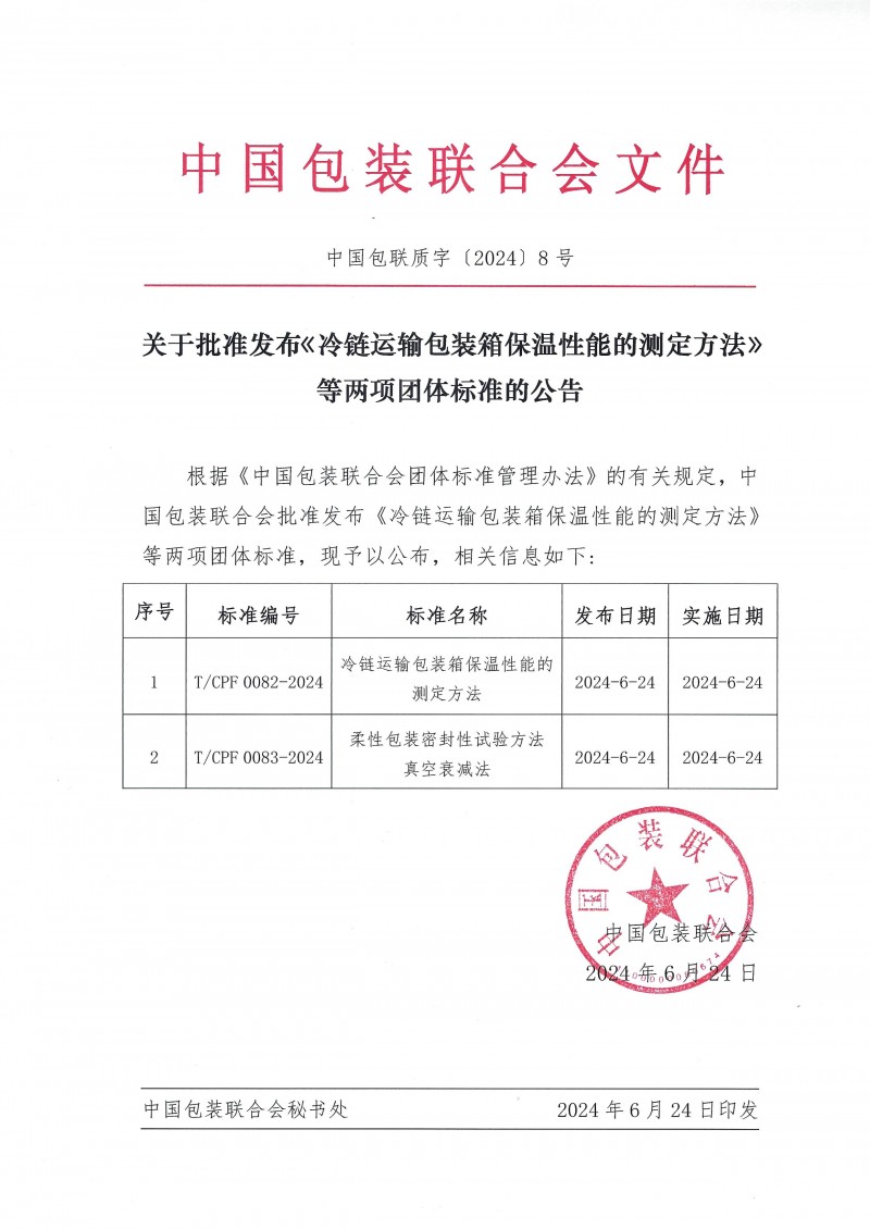 T/CPF 0082-2024 冷鏈運輸包裝箱保溫性能的測定方法