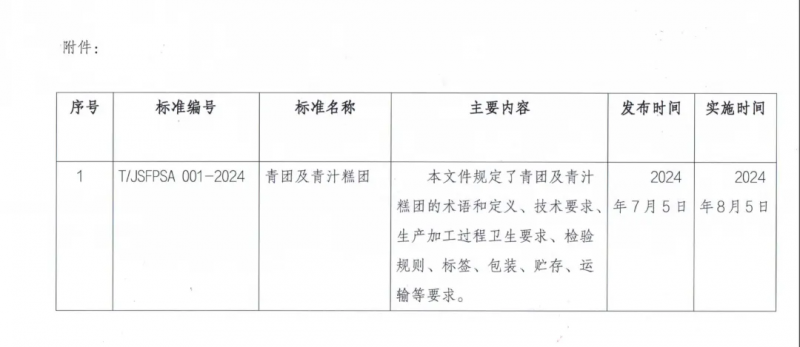 根據《中華人民共和國標準化法》以及國家標準化管理委員會、民政部《團體標準管理規定》的有關規定,江蘇省食品生產安全協會批準發布《青團及青汁糕團》團體標準(標準編號、名稱、主要內容等見附件),現予公告,自2024年8月5日起實施。特此公告。