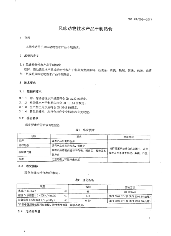 根據《中華人民共和國食品安全法》和原衛生部《食品安全地方標準管理辦法》(見衛監督發[2011]17號文件)的規定,經湖南省食品安全專家委員會審查通過,現發布《風味動物性水產品干制熟食》(DBS 43/006-2013)食品安全地方標準。