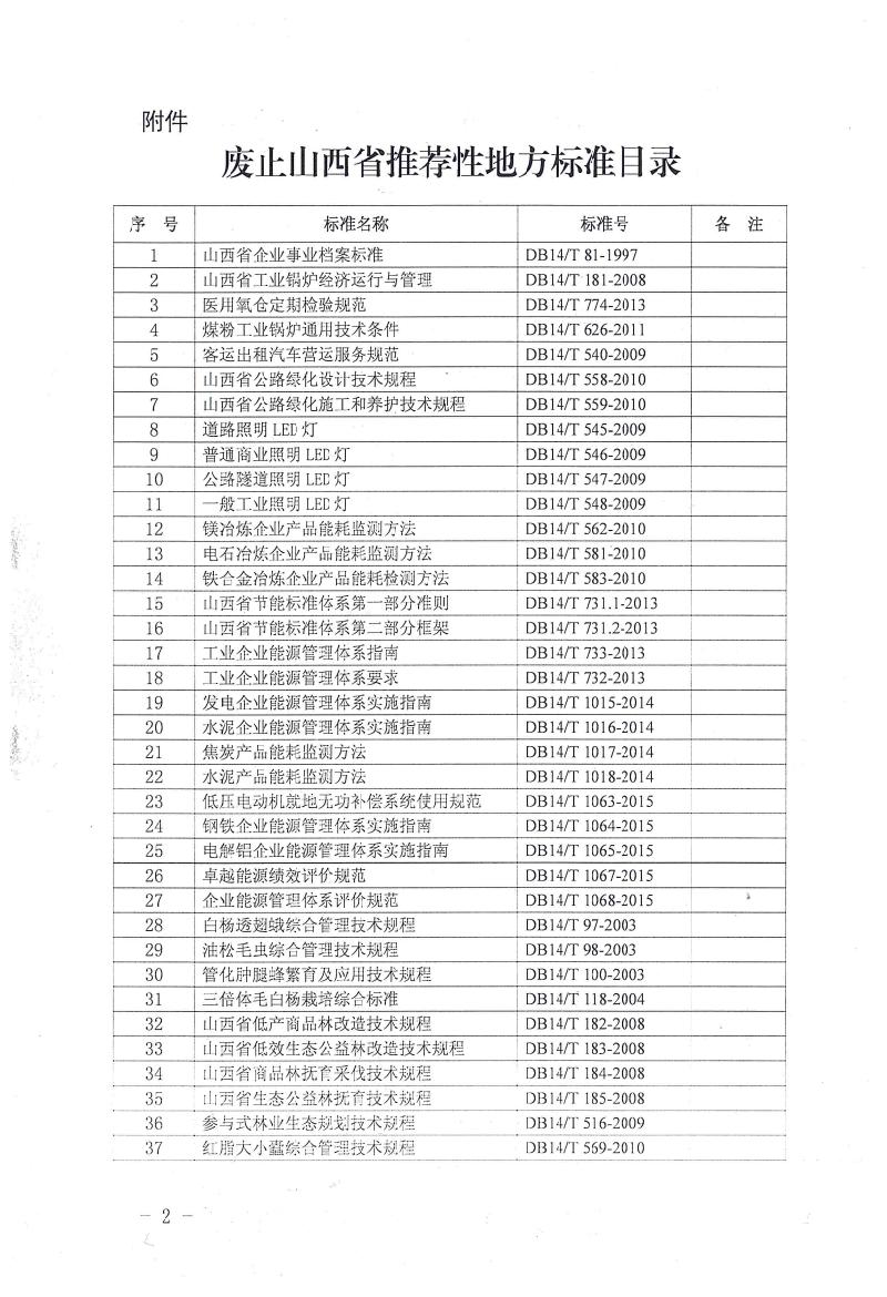 附件:廢止山西省推薦性地方標(biāo)準(zhǔn)目錄