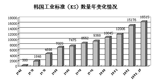 1964年,KS標準只有895項,到2002年,增加到15176項。KS標準每五年審核一次,確定該標準是否應該被修訂或取消。
