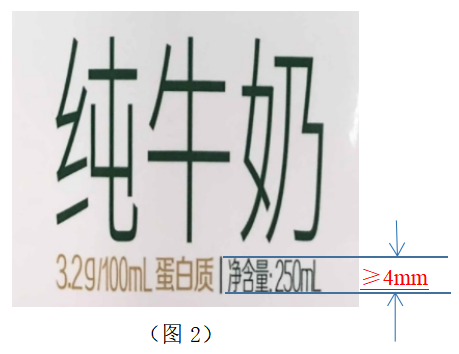 Ø 字符高度要求:字號不得大于食品名稱和商標。
