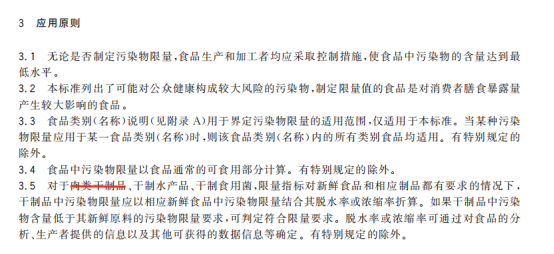對(duì)“3 應(yīng)用原則”進(jìn)行了調(diào)整,擬刪除3.5條中的“肉類干制品”(見(jiàn)下圖1)。這一變化意味著肉類干制品與其他肉制品采用相同的污染物限量要求。