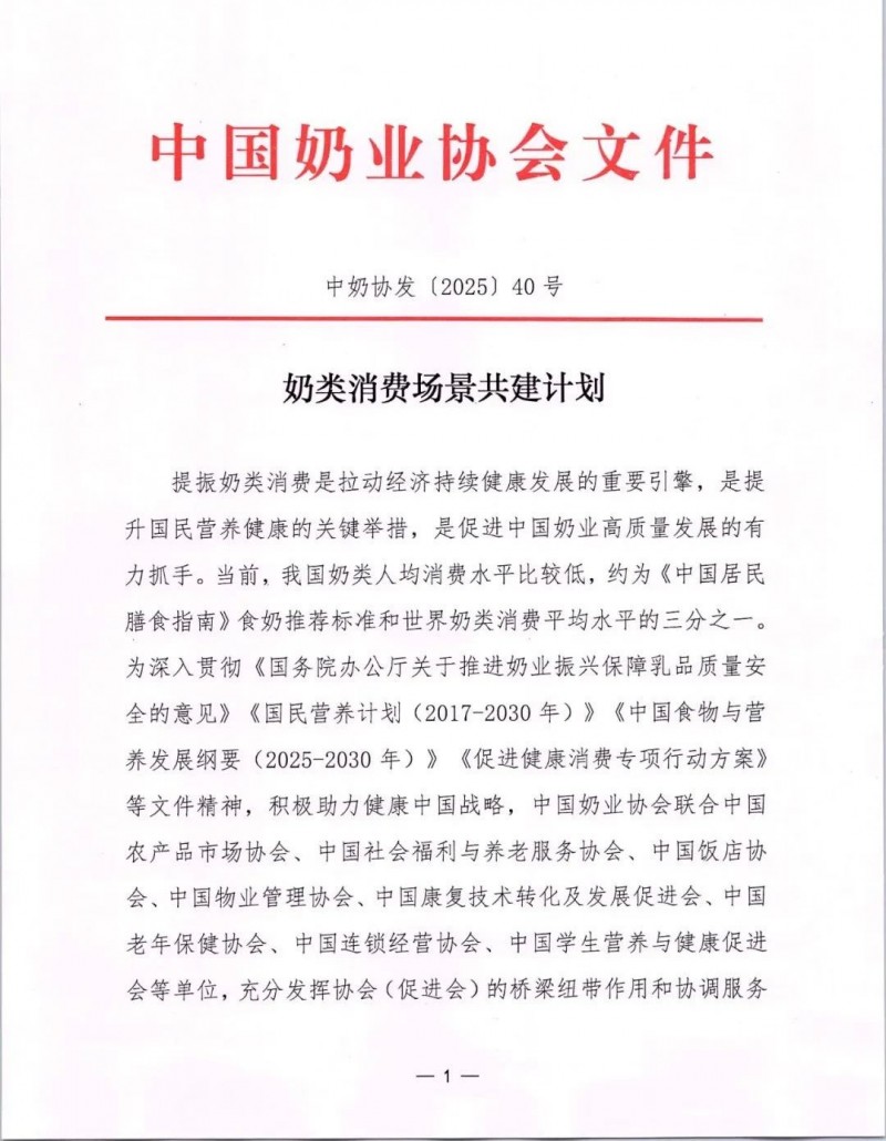 下載中心首頁 » 動態公告 » 中心動態 » 中國奶業協會發布《奶類消費場景共建計劃》