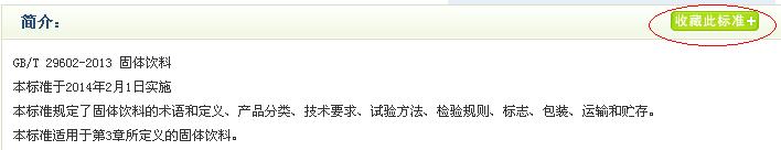 標準和資料頁面,點擊簡介右邊的“收藏此標準”或者“收藏此資料”