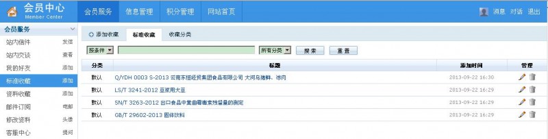 3、會員可以在前臺收藏您喜歡的標準、資料,以方便自己日常工作和查找。